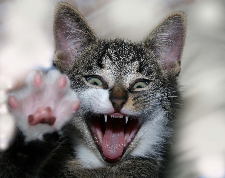 Es war einmal ein kleiner Kater. Er lebte bis zu seinem 8-wöchigen Geburtstag in Engelmannsreuth. Danach zog er im September 2005 nach Schreez. Hier lebte er, bis er eines Tages als Balkonspringer bekannt wurde. Der kleineTieger, hatte Angst vor seinem Frauchen, und sprang vom Balkon auf ein benachbartes Fensterbrett. Doch leider war dieses Fensterbrett zu schmal und zu rutschig, um sich festzuhalten. Der kleine dumme Kater, landete 4 Meter tiefer auf den Waschbetonplatten. Vor lauter Schreck merkte er seine Schmerzen noch nicht. Er wurde von einem großen Mann eingefangen, und wieder in sein Körbchen auf dem Fensterbrett gelegt. Mit einmal fing er an zu jammern und vorallem zu humpeln. Vor lauter Angst um den Kater, wurde beim Tierartz angerufen. Dieser meinte man soll mal noch abwarten, denn eine Prellung der Gelenke dauert bei Katzen maximal fünf Stunden. Nachdem der arme Kater aber auch am Abend noch sehr hinkte, entschloss man sich am nächsten Morgen zum Tierazt zu fahren. Die Fahrt dorthin war sehr aufregend. Miau, Miau, Miau, Miau, die ganze Fahrt über. Denn Autofahren mag der Balkonspringer überhaupt gar nicht. Beim Tierarzt angekommen, war der Tieger ganz ganz arg kleinlaut und ängstlich. Er ließ die Behandlung über sich ergehen. Er wurde gerögnt. Aber vorher, machte er die Praxis unsicher und freundete sich mir der Praxiskatze auf drei Pfoten an. Ob das die große Liebe wird?